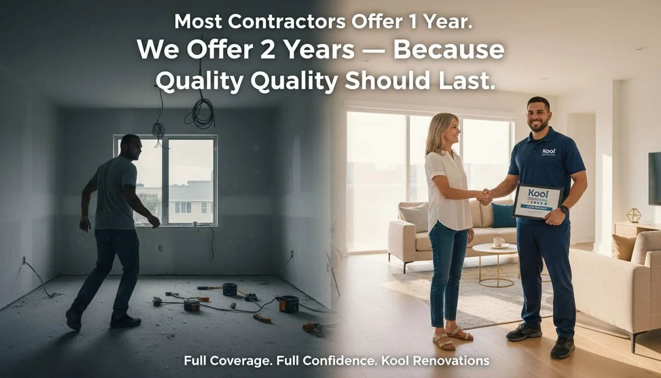 Most contractors only offer a one-year or limited warranty — if any. Kool Renovations goes further with two full years of coverage that includes both parts and labor, no hidden fine print, and responsive service. It’s our way of proving that quality and accountability define every project we complete.